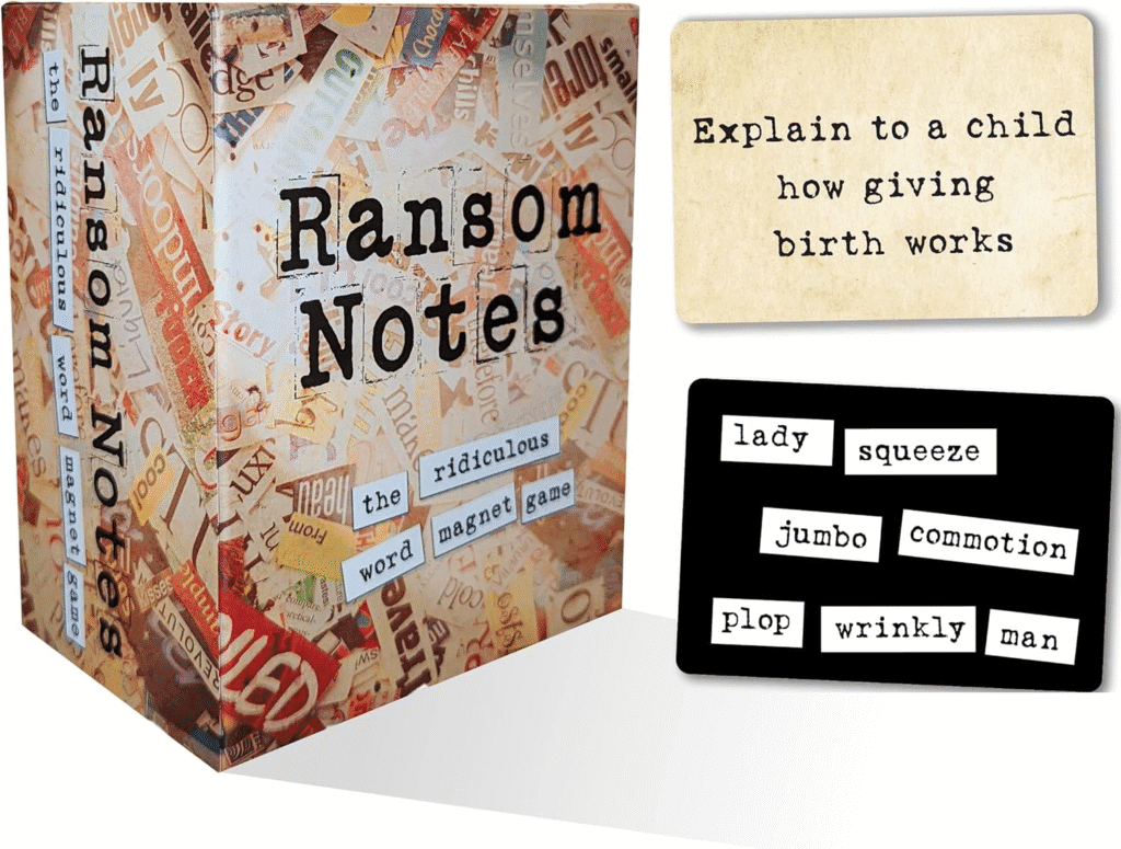 A party game where players must create sentences using only a limited set of word tiles, usually in response to funny prompts. The restrictions make the results ridiculous, creative, and often chaotic — Ransom Notes is perfect for big laughs in the kitchen or common room.